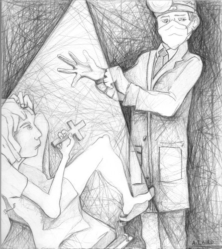 Back when I was younger and I got into trouble, my dad would hand me a rosary and tell me to pray. He does offer to help in other ways but the Rosary was always his first reaction. I imagined what it might feel like to know that by law in Kansas, my right as a human being to receive proper medical treatment will be compromised for the right of a doctor’s religious freedom.